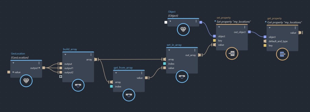 If we were to do the same using Amino object, we could certainly preserve each sub-data inside the object, but we would have to use a get_property node to extract each sub-data we wish to use, and then, in order to re-save these data on our object, we would have to daisy-chain some set_property nodes for each updated sub-data. This would results in using more nodes and therefore make the graph messier. Thanks to the data structures, we don’t need to deal with any of this. We just plug the updated data to the data structure’s members and voilà. No mess, no performance loss.