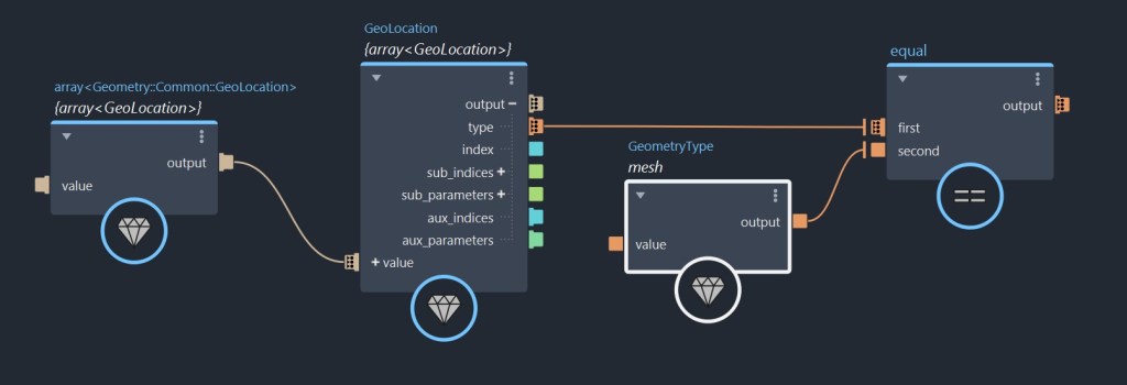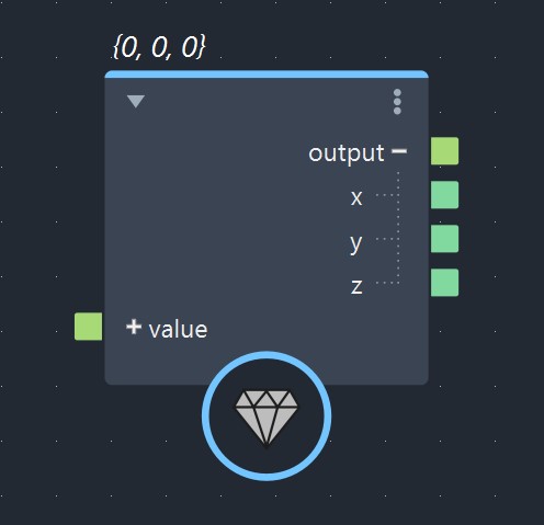 Here is a trick you can to decompose the data structure of an array. You can take a value node and set its type with the non-array version of the data type you wish to use. If you plug an array of the same data type as its input, the auto-looping feature of Bifrost kicks in and you can access all of the array’s data structure’s members. On the opposite, if you directly set the array variant of the data type on a value node, then the + icon disappear, and you lose the access to its members, which makes it useless to use a value node at all. This is why I recommend to always use non-array versions of data types with the value node and make it to auto-loop.